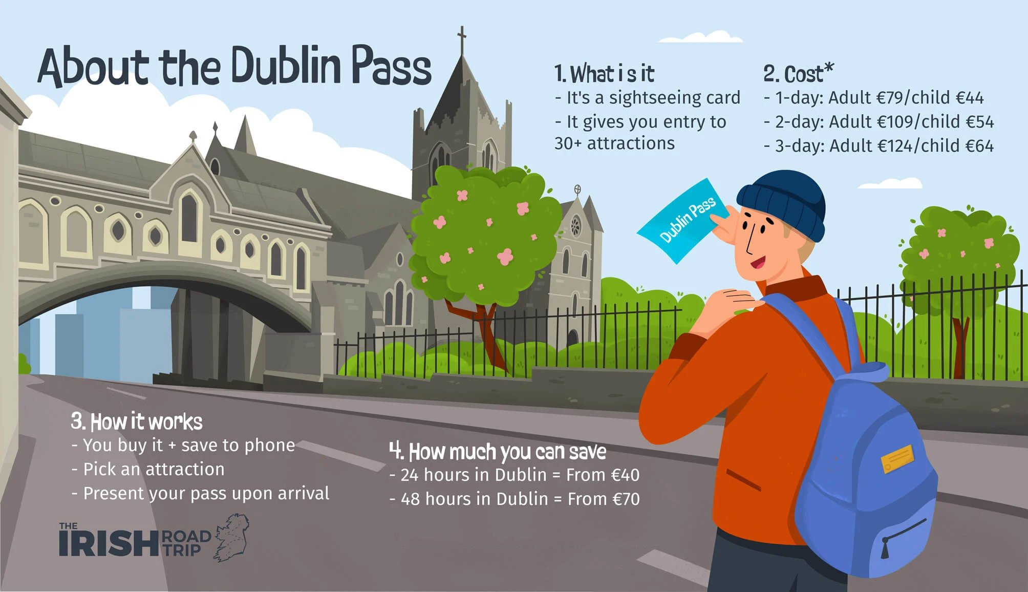 - You buy the Dublin Pass for a set price